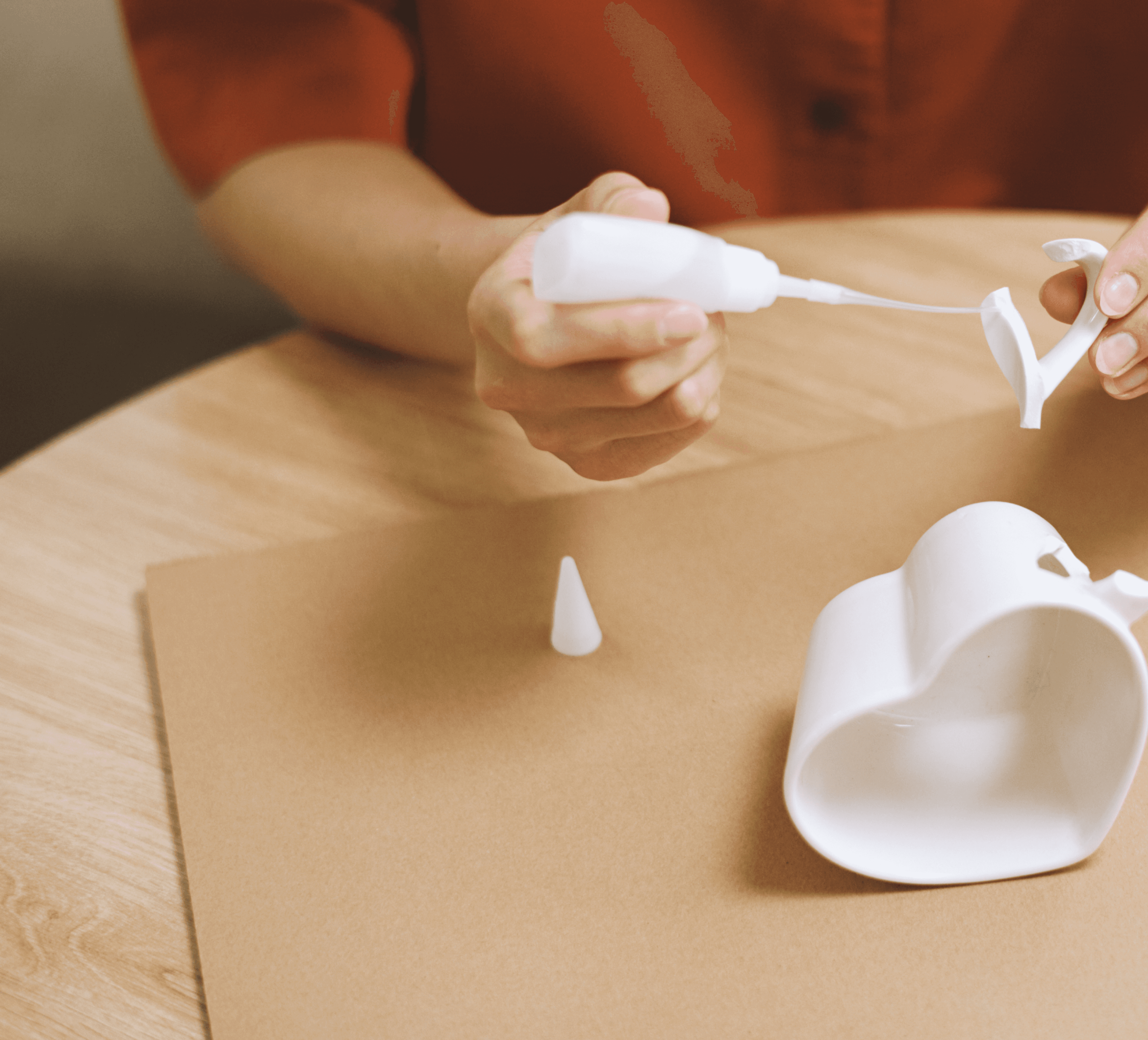 3. Aplicar uma fina camada do adesivo em apenas uma das superfícies.